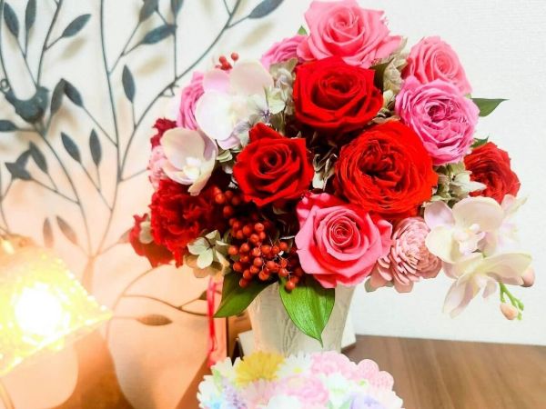 【追記】2周年記念に送られて来た、花&リース&スイーツです。