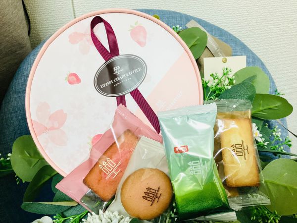 お客様を迎える玄関扉と受付がとても華やかになりました♪美味しいスイーツもごちそうさまです。
